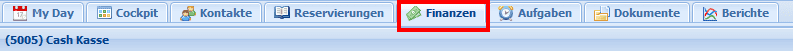 Nach der Aktivierung der Finanzen, erscheint auch der Reiter Finanzen im Cockpit.