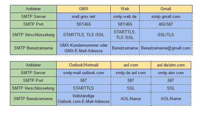 SMTP Benutzername: Von Anbieter zu Anbieter unterschiedlich z.B. max.mustermann@gmail.com