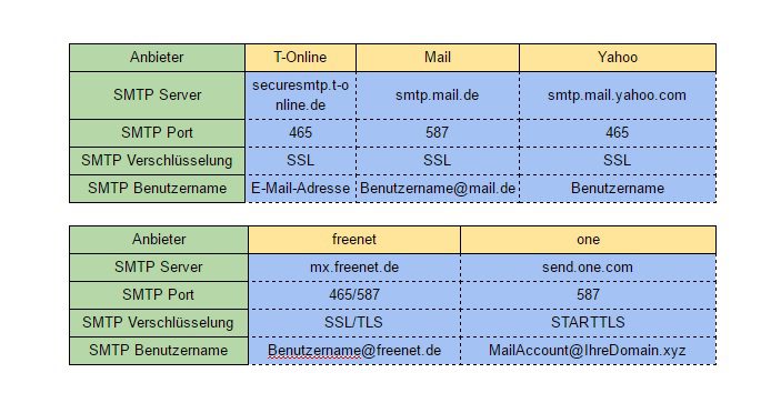 SMTP Server: Der Server ihres E-Mail Anbieters z.B: “smtp.gmail.com” welcher zum Versenden benutzt wird