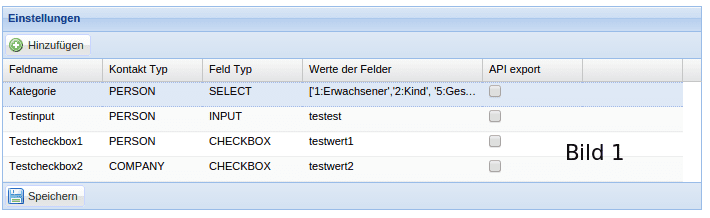 Durch Klick auf den Button „Hinzufügen“ wird ein neues Feld angelegt. Folgende Werte müssen jetzt noch angegeben werden: