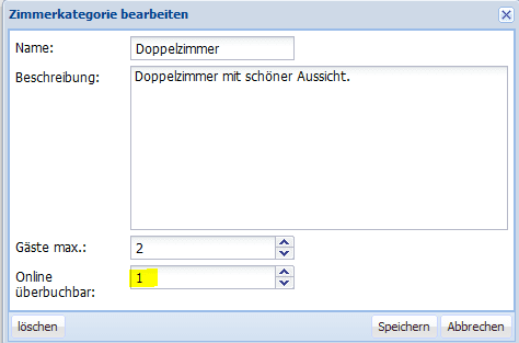 Wenn Sie allerdings bewusst mehr Zimmer zum Verkauf anbieten möchten als Sie haben, können Sie auf dem Reiter ‚Zimmer‘ in ‚Mein Hotel‘ die Online Überbuchbarkeit pro Kategorie einstellen. Wenn Sie die Online Buchbarkeit einer Kategorie auf 1 stellen, kann 1 Zimmer mehr verkauft werden, als Sie haben.
