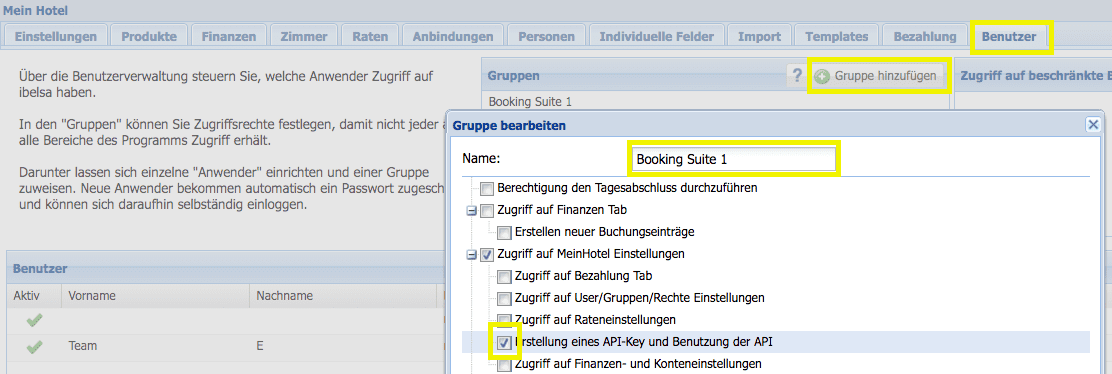 Ein APISchlüssel ist ein Sicherheitsschlüssel, der anderen Applikationen Zugriff auf Teile der Daten in Ihrer ibelsa.rooms Datenbank gewährt. Drittanbieter wie z.B. booking.suite oder Zapier werden diesen bei der Einrichtung und Anbindung neuer Applikationen bei Ihnen anfragen.