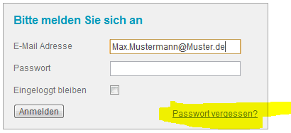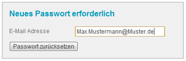 Sie werden im folgenden Dialog aufgefordert, Ihre E-Mail Adresse einzutragen und im Anschluss die Anfrage mit „Passwort zurücksetzen“ abzuschicken.