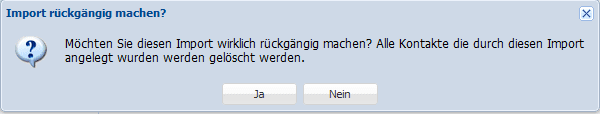Klicken Sie auf das um den Import rückgängig zu machen. Beantworten Sie die Sicherheitsabfrage mit ‚Ja‘ um den Import jetzt rückgängig zu machen.