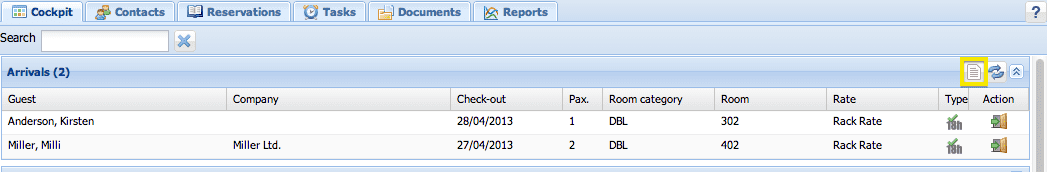 1. Registration form stack pressure through the cockpit: You are in the cockpit. Go to the icon in the ‘Arrival’ row.