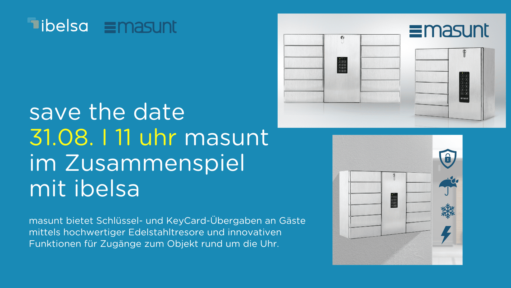 masunt bietet Schlüssel- und KeyCard-Übergaben an Gäste mittels hochwertiger Edelstahltresore und innovativen Funktionen für Zugänge zum Objekt rund um die Uhr.