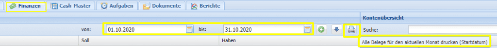 Bei jeder Buchung wird ein Beleg generiert, es kann auch eine Monatsübersicht aller generierten Belege ausgedruckt werden.