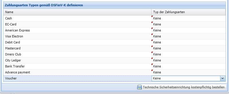 Nach dem Anklicken öffnet sich das nachfolgende Fenster. In der linken Spalte finden Sie, die in Ihrem System hinterlegten Zahlungsarten. Diese müssen Sie nun den Zahlungsarten der TSE zuordnen.