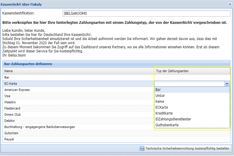 Damit ist der Bestellprozesses abgeschlossen. Sie haben nun Zugang zum Bereich der TSE im Backend Ihres ibelsa.rooms Accounts unter dem Punkt Mein Hotel / Einstellungen.