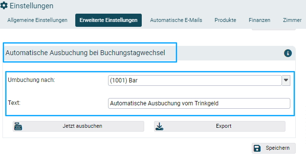 Konfiguration automatische Ausbuchung von Trinkgeld bzw. Auslagen