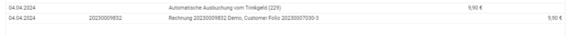 Wenn die Rechnung, auf dem sich der Tip befindet, später geschlossen wird, wird dies auf dem Trinkgeldkonto ausgebucht.