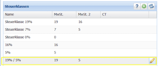 Wenn man mit der Maus über den Mehrwertsteuersatz geht, erscheint ein Bleistift.