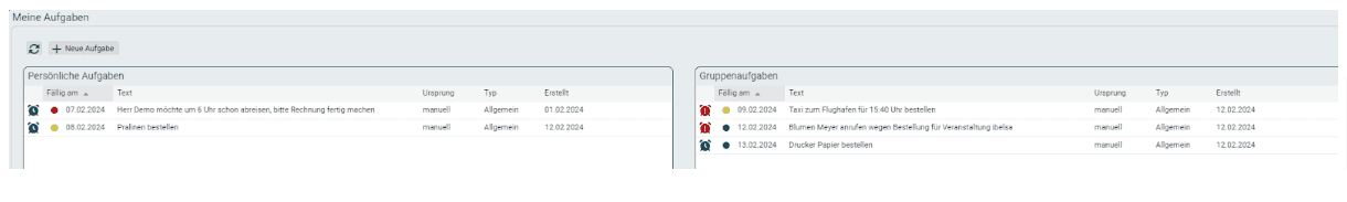 Bei allen Mitarbeitern dieser Gruppe werden die Aufgaben angezeigt. (Hoteladmin hat keine eigene Benutzergruppe, ist nur als Benutzer vorhanden)