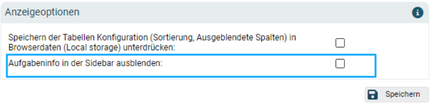 - wenn das Aufgaben Icon nicht angezeigt werden soll, kann dies unter Einstellungen – Anzeigeoptionen definiert werden