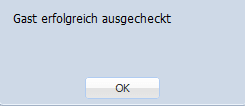 In dem letzten der 3 möglichen Fälle steht das Debit des Gastes zwar auf 280,00 € – die Rechnung wurde also noch nicht bezahlt und erstellt – aber der Gast kann trotzdem ausgecheckt werden. Das liegt daran, dass dieser Gast zu einer Hauptreservierung mit 2 oder mehr Zimmern gehört. Alle Gäste einer Gruppenreservierung können ohne Bezahlung und Erstellung der Hauptrechnung ausgecheckt werden, bis auf den letzten Gast der Gruppe. Beim letzten Gast einer Gruppe tritt Fall 2 ein: Die Rechnung muss nun erst bezahlt und erstellt werden, erst im Anschluss ist der Check-out für den letzten Gruppengast durchführbar. Zahlt ein Gruppengast einzelne Beträge selber, kann natürlich über die Funktion „Rechnung“ die Rechnung des einzelnen Gastes geöffnet und bearbeitet werden. Nach erfolgreichem Check-out erhalten Sie die Meldung: