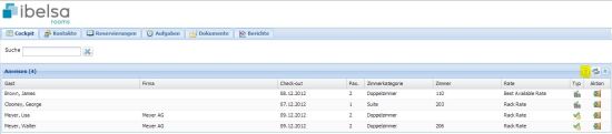 Gehen Sie auf den Reiter ‚Berichte‘ und wählen Sie das Drucksymbol in der Zeile ‚Meldeschein‘ aus.