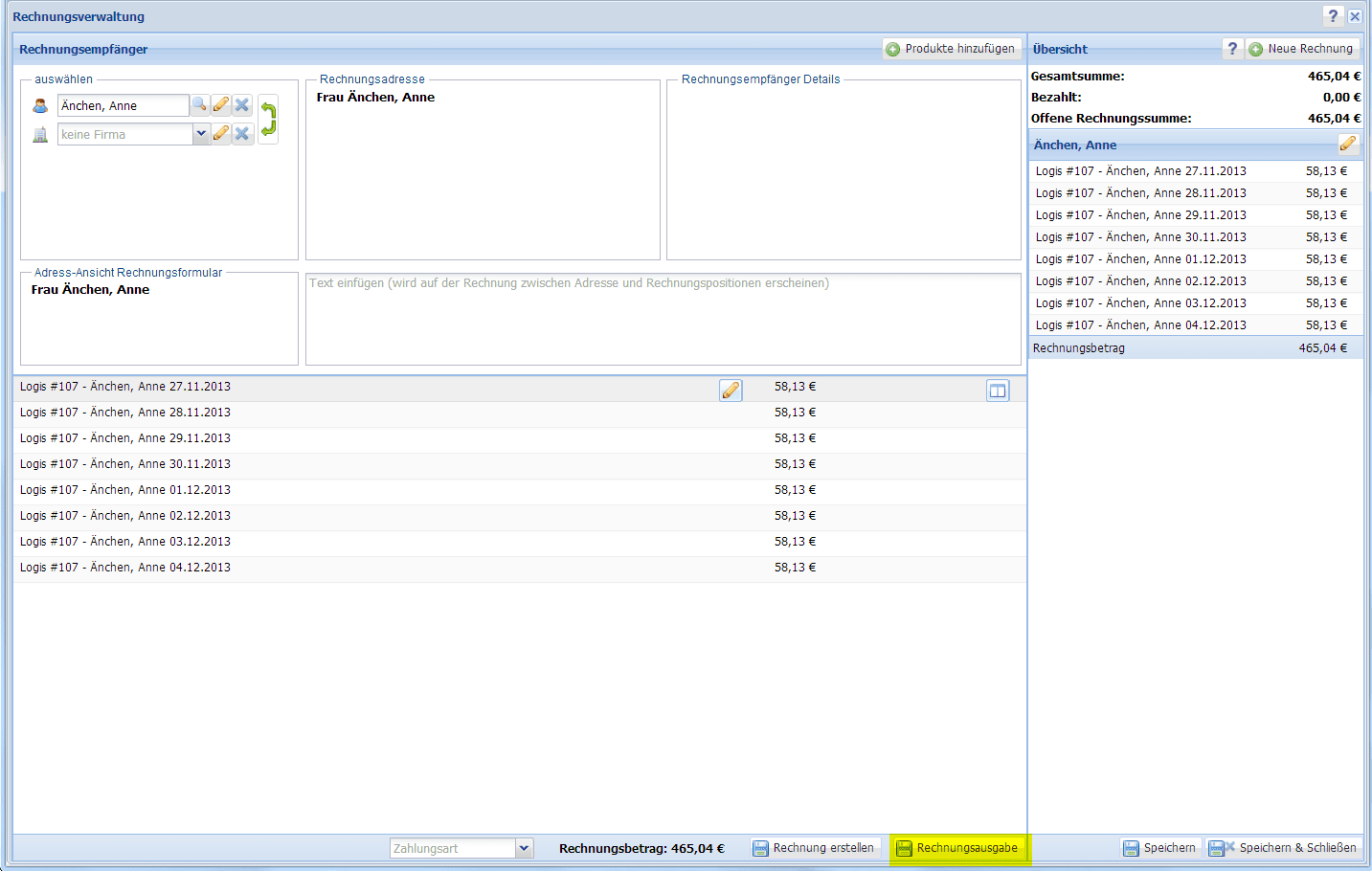 Bei der Informationsrechnung handelt es sich um eine Rechnungsvorschau zu einer offenen Rechnung, in der die Zahlung ggf. bereits festgehalten ist, aber noch keine Rechnungsnummer vergeben wurde.