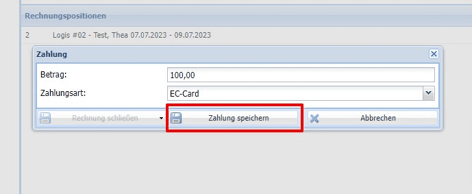 1. Sie gehen über die Zahlung und speichern den entsprechenden Betrag X sowie die Zahlart.