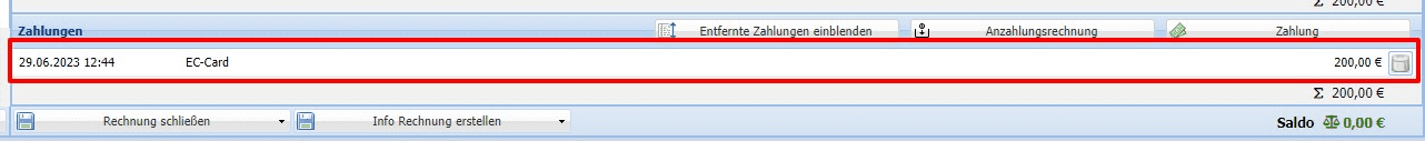 Bereits gebuchte Zahlungen stornieren sie über das Mülleimer-Symbol ![]()