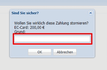 Es öffnet sich ein neues Fenster, in das Sie den Grund der Zahlungsstornierung eingeben.